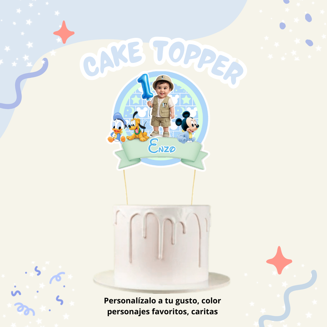 ✔️ 1-Topper de tarta con nombre y temática, puedes añadir personajes y foto tipo pixar